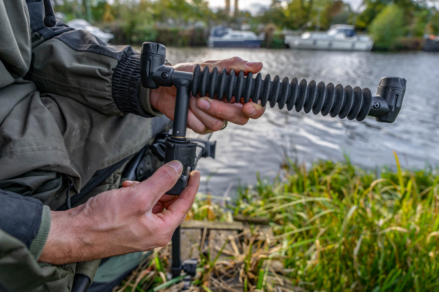The perfect way to fish with two rods from your fishing chair. An ultra stable telescopic extending feeder arm with an adjustable angle tilt constructed from a lightweight but strong extrusion. Comes complete with two Speedfit buzz bars that allow you quickly change between rod rests and alarms as needed. Ideal for short rods on commercial fisheries or longer rods on rivers and natural venues. The quick release head allows you to quickly and easily remove the buzz bars when packing away making it lightweight portable and compact to transport. Compatible with 23mm 25mm & 30mm round 23mm S23 square leg profiles and 36mm round.